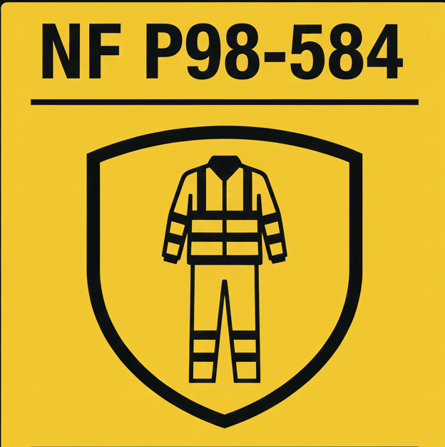 NF P98-584 : Classe 1 : Dispositifs de signalisation temporaire. / ISO 7010 : Symboles graphiques et couleurs de sécurité.