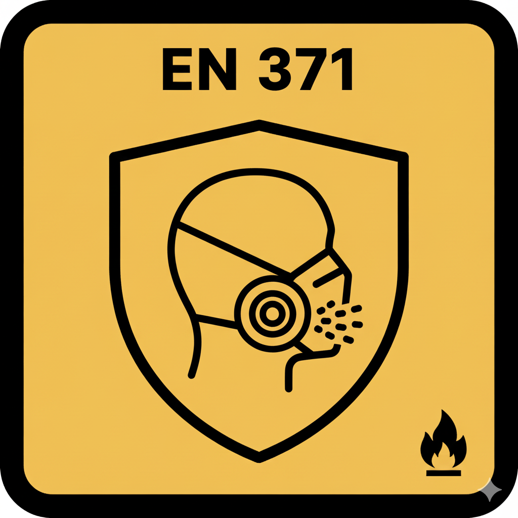 EN 14387 : Filtres anti-gaz ABEK1 (Classe 1 - Capacité 1000 ppm) / EN 371 : Filtres AX contre vapeurs organiques